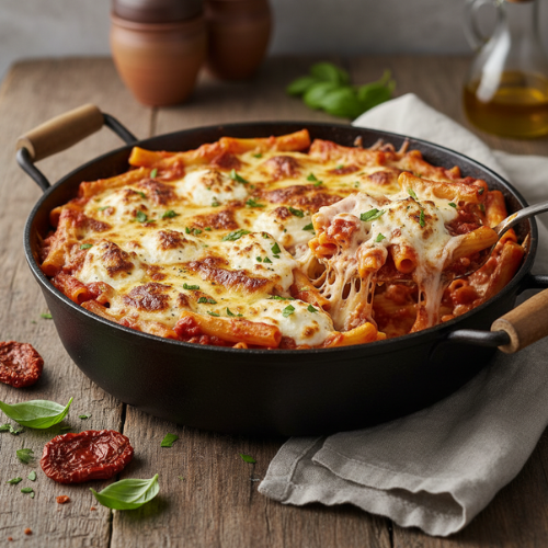 Pasta, marinara, ricotta, mozzarella—bake and done.